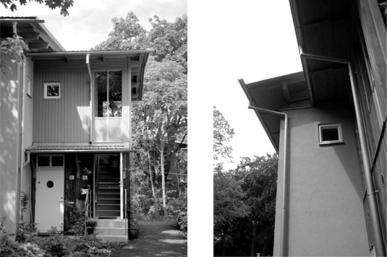 Tomten som ligger ett stenkast från havet var vid projektets början vildvuxen. En inventering av samtliga träd gjordes varefter byggnaderna varsamt placerades ut. Resultatet blev att bebyggelsen redan från början var inbäddat i grönska.